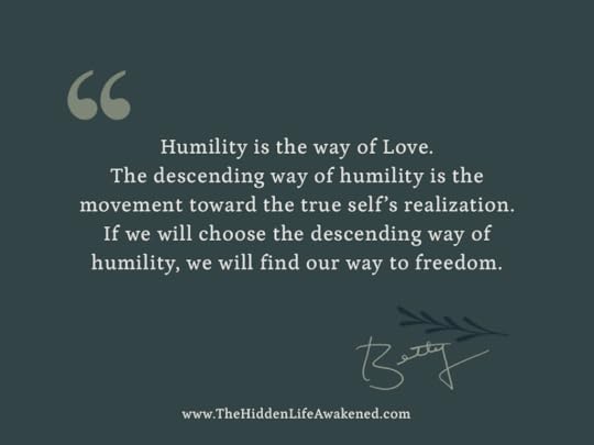 Humility is the way of Love. The descending way of humility is the movement toward the true self’s realization. If we will choose the descending way of humility, we will find our way to freedom. ~Betty