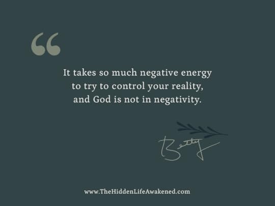 It takes so much negative energy to try to control your reality, and God is not in negativity. ~Betty
