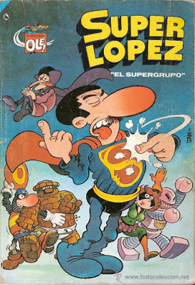 Henar TorinosUn pequeño añadido al anterior post, acerca del Supergrupo, el grupo de superheroes que han compartido aventuras con Superlopez en un par de entrañables álbumes de los inicios de la colección, y en otros pocos más recientes donde Jan y Efepé (actual dueño de los derechos de estos personajes) volvían a unir fuerzas.