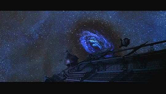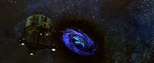 Esta última en concreto era el mejor ejemplo de lo que estoy diciendo, un producto que no acaba de centrarse en un target concreto, que al principio parece el espectador de Star Wars, pero va como a la deriva entre géneros, llegando a tener momentos de puro terror. Con razón de crio me impresionó tanto. Esa nave gótica y siniestra, la tripulación de fantasmales robots-zombi...y la poderosa, ominosa presencia, al fondo, de ese remolino en el espacio, el Agujero Negro, amenazante, que parecía que te podía tragar. Desde entonces me fascinó este fenómeno de la astronomía, y cuanto más aprendía sobre ellos, mejor comprendía lo dificil que era poder captar la imagen de uno.