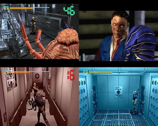 La acción en Deep Fear se traslada al fondo del mar, donde un extraño virus que parece transmitirse por el aire empieza a hacer mutar horriblemente al personal de una estación submarina. El rollo a lo Abyss o Leviathan me atrajo desde el comienzo, y, aunque ves clichés a cascoporro, la verdad es que engancha. A diferencia de los RE de la época, aquí tienes algunas caracteristicas como la posibilidad de que el personaje camine a la vez que dispara, o que pueda accionar un arma secuendaria con otro botón, normalmente granadas explosivas, aunque el movimiento es igual de robótico que en aquellos. Las criaturas fueron diseñadas por el desaparecido Yasushi Nirasawa, y tienen un toque más colorido que los típicos zombis de otros juegos. Una cosa muy entre insectoide y crustáceo, A pesar de tratarse e alguna clase de virus que muta descontroladamente, van sucediendose varias generaciones de bichos, con una apariencia cada vez más definida. La música, que no está presente más que en determinadas escenas y cinemáticas, es nada menos que de Kenji Kawai, y es que parece que SEGA quiso tomarse este proyecto en serio, aunque fueran contrarreloj.