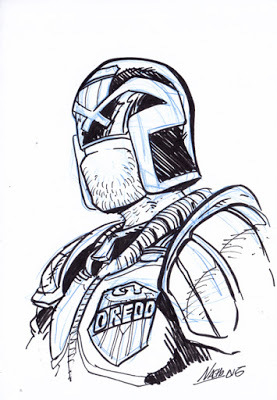 Se han hecho un par de intentos de llevar al cine a su personaje más emblemático, el Juez Dredd, que es un poco la carta de presentación de un universo entre el Cyberpunk, el Heavy metal, la parodia descarnada, y las autorreferencias a la cultura pop británica. Un mundo futuro postnuclear, donde los EEUU quedaron arrasados por la guerra atómica y en Marte se libraron las guerras ABC (biológicas, átomicas y quimicas) a cargo de ejércitos de duros y poderosos robots. El mundo exterior está contaminado y a merced de bandas de peligrosos mutantes producto de la radiación. Mega-City1 es una de las megaciudades donde sobrevive la civilización, entre modernos edificios inteligentes, bloques masivos que tienen la población de distritos enteros, delincuencia fuera de control, bandas equipadas con armamento de las viejas guerras, y en medio de este caos, como símbolo del nuevo orden que intenta mantener todo unido, los Jueces como fuerza policial que legisla y ejecuta. Una visión que impresiona por lo cerca que estamos de acabar cualquier dia dejando en manos de un cuerpo así la seguridad de nuestras ciudades.