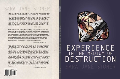 New design work from Further Other Book Works: Sara Jane Stoner’s EXPERIENCE IN THE MEDIUM OF DESTRUCTION (Portable Press @ Yo-Yo Labs, 2015). Julia & I knocked this one out at the end of last year, and Brenda Iijima’s just made it available. We highly recommend! Get yours here.