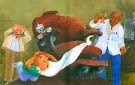 [image error] NKA: You came through with flying colors (pardon the pun) with this illustration. I see so much movement in the book cover. ADL: Thanks, Nancy. I appreciate your comments. Since I've “said my alphabet in picture book form” three times before (Easter Day Alphabet, Halloween Alphabet and Thanksgiving Day Alphabet, all from Pelican), I was pretty sure that the arrangement of this alphabet book would follow the same style.....25 single pages, one for each letter, with one “double page spread”, all of which start on page 5. One of the letters I had the most fun with was “O”. Nikki's lively southern style text called for okra, oak tree, overalls and relating “old ways”. Whew! That's a LOT of stuff to show in just one scene, plus leave room for the text and the actual letter “O”. You can see how I handled it below: