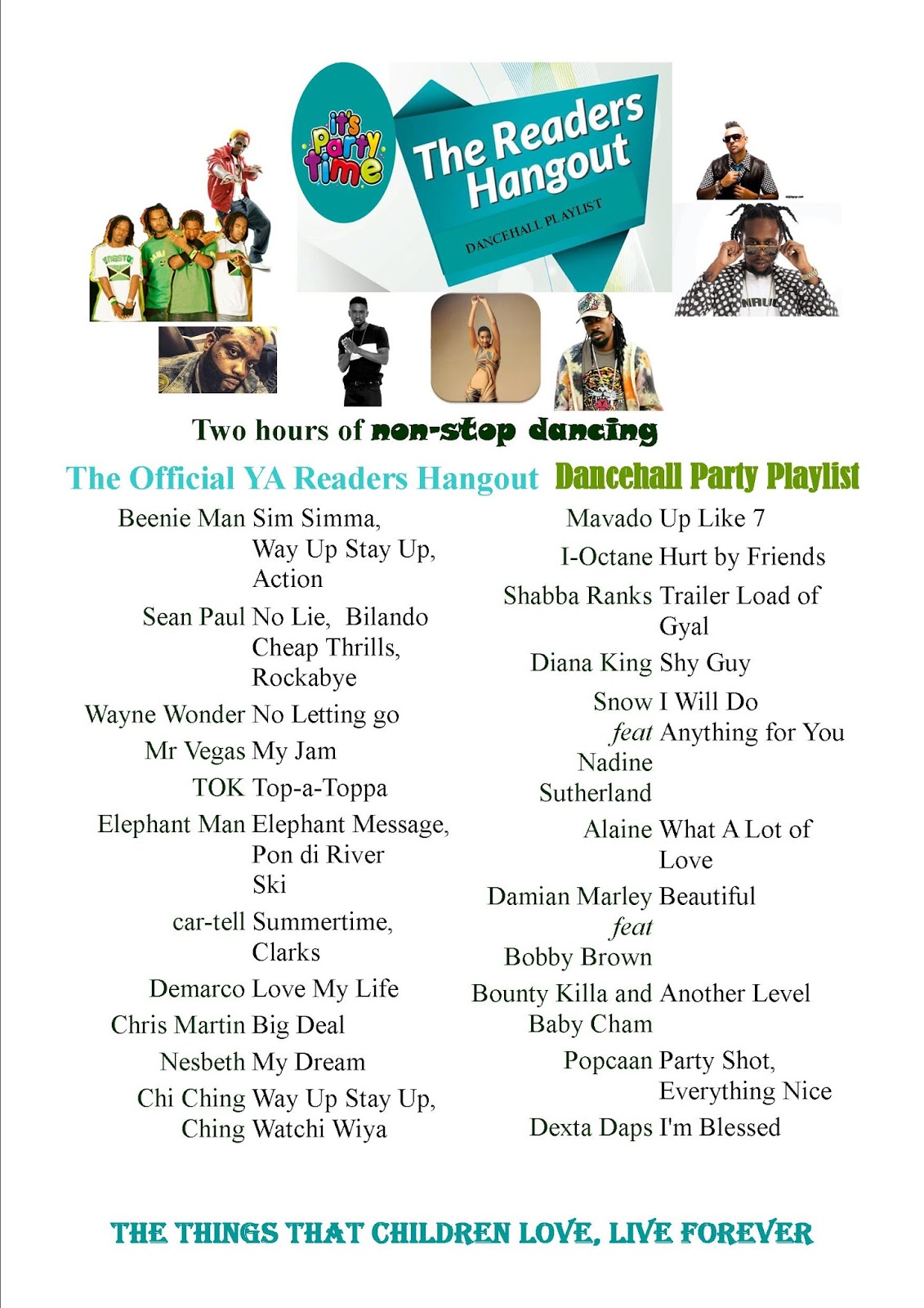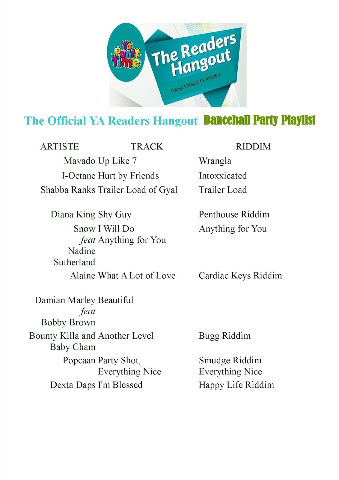 The YA Readers Hangout released its high energy Dancehall Party Playlist for the benefit of DJs and event planners who serve tween and teen audiences.
