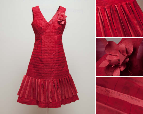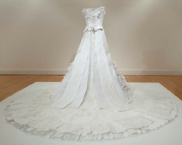 The internet is a brilliant thing, connecting all of visually. I came across Julie VonDerVellen's work last year. It really is amazing what one can do with paper. VonDerVellen creates garments out of handmade paper (which is made out of recycled cotton clothing). She says that "garments evoke memories; memories evoke garments" and she's right. Her pieces are intricately woven and painstakingly put together to re-create garments. The paper also has the story of the specific memory printed on it thus binding the memory and the garment together. Check out more of her work here.