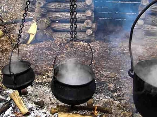 Boiling sap (Photo by Kalamazoo Nature Center)