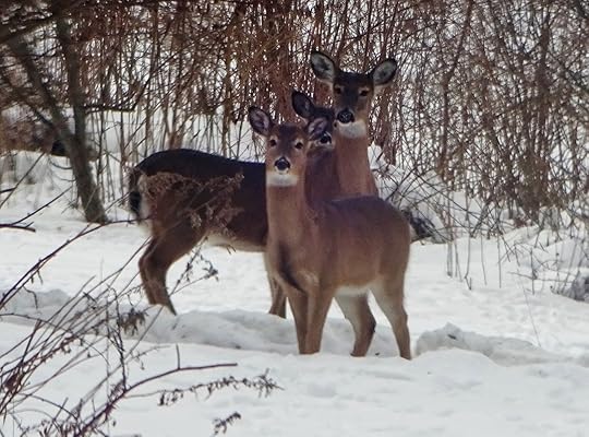 I had hoped to have seen the three of them show up by now, to nibble at the treats I leave for them in the back of the farmhouse. Certainly not enough to feed them—they are on their own there—but to offer a little extra something, a juicy apple, a handful of cracked corn, to ease the winter months. The larger doe has a broken leg, seemingly an older injury. She hobbles along through the snow, but can run surprisingly well wh...