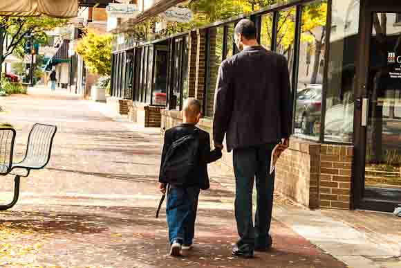 Christian and his father shopping, downtown Kalamazoo (Photo by Susan Andress)
