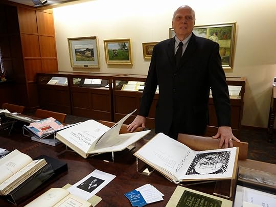Paul Smithson, curator, in the Rare Book Room at K CollegeOnce or twice a month, I record radio interviews for the Arts and More program at WMUK radio. In May, I talk to Paul Smithson at Kalamazoo College: