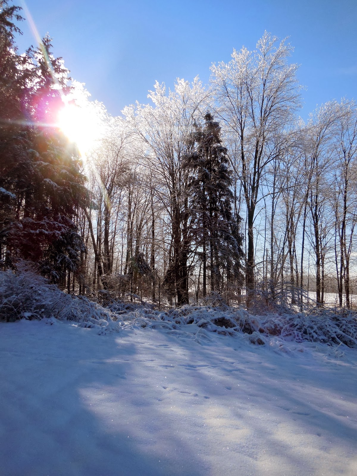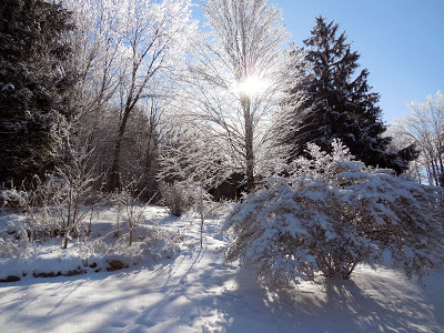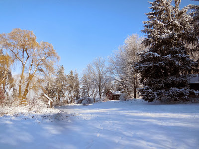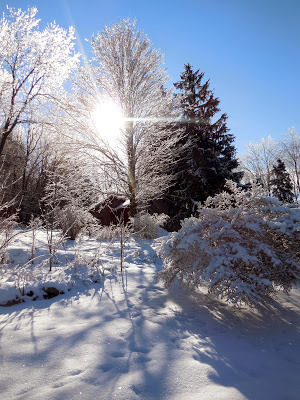 A day of blessing, waking to a bright sun on white snow, turning Z Acres into a land of winter wonderland. I race outdoors and find myself gasping in wonder ... the heart never tires of such beauty.