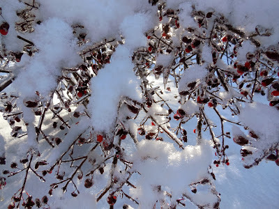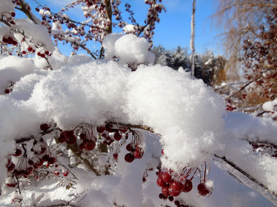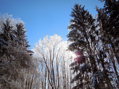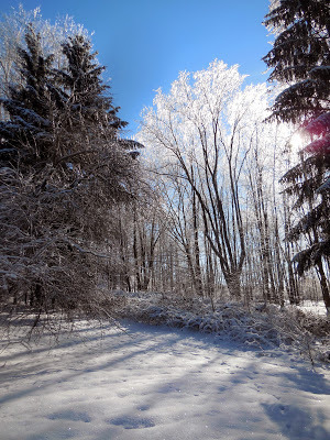 Winter has been winter again. The way I remember her. Chillingly cold, clapping her blue hand over your mouth and stealing your breath, slipping ice fingers down your shirt and between the seams to make you shiver, biting the tip of your nose until it turns bright red. She sweeps her white skirts in drifts across the road and hangs dripping lace along the branches of the denuded trees, striping their trunks with snow. I love her when she shows a little wild.