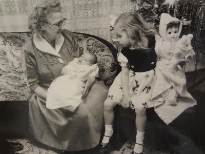 Our grandmother holding me up to my big sisterShe was the girl in the family ... the one who liked feminine things, the ribbo...