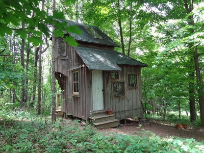 What could this odd-shaped and many-windowed little house in the woods have possibly housed? I stood in the woods on the top of the hill with my real estate agent, gazing in befuddlement—and increasingly also in delighted awe—at the little structure that reminded me a little of a Dr. Seuss house, a little of a Tim Burton mad creation.