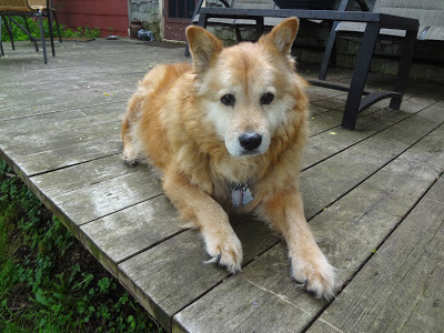 Guinnez awaits me on deckIt's how Guinnez and I start every day: we head outside at Z Acres to wander the grounds and see what's new, what's growing, what catches our eye. With his increasing age, my old chow pup is starting to tag along at a slower pace, but whenever I look around, there he is, nearby, ever faithful.