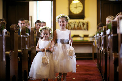 Sister and brother walking down the aisle