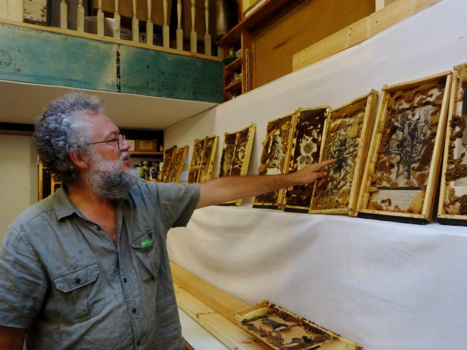 Lad Hanka with his collaborative art with live bees (Photo by Zinta Aistars)Ladislav Hanka of Kalam...