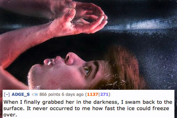 These are great. I posted them on another blog a couple of years ago, but they still intrigue me. I wish I could take credit for any of them but I can't. Enjoy! ~ Jamie Hill If you're looking for a horrifying story that will keep you up tonight, don't waste all that time watching a horror movie. Reddit has provided us with pages of terrifying horror stories wrapped up in two sentences or less. Here are some favorite stories guaranteed to make you keep your lights on tonight.
