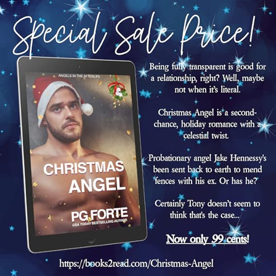 Christmas Angel is a second-chance, holiday romance with a celestial twist. Probationary angel Jake Hennessy's been sent back to earth to mend fences with his ex. Or has he? Certainly Tony doesn’t seem to think that's the case.