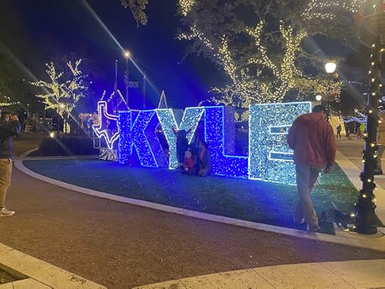 Here are some photos I took last year of my town square all dressed up for the holidays. PLUS an article about a woman in town who turns her house into a giant gingerbread house every Christmas (I might have used that idea in Christmas Angel, btw). FINALLY, I've also embedded a video I put together after a trip to the grocery store last week.