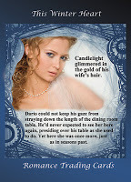 I've been buried in packing boxes these past few weeks thanks to the-move-that-will-not-end, so instead of writing a special short story for this hop, I thought I'd go with a Valentine's excerpt from Sound of a Voice That is Still, the book I'm giving away as part of this weekend's very cool prize package. Then I got a look at this very cool and very sexy banner. It reminded me a lot of the picture I used for the back of one of my Romance Trading Cards.