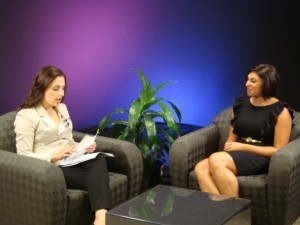 Sarah Russo and I preparing to chat about life afterThe Bank of Mom