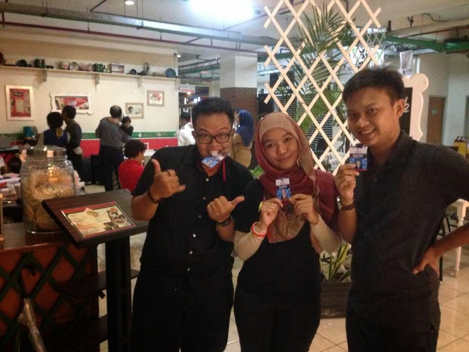 Dua hari kemarin menyenangkan! :D Hari Rabu, Rhein dan beberapa teman latihan mengelola sebuah kafe milik pebisnis yang menjadi mentor kami di kampus (namanya Ibu Cilik Ari). Ceritanya dari sekelompok anak ini ada yang jadi manajer kafe, bagian dapur, kasir, waitress, dll. Yang datang ke kafe buaaannyaaaakk.. Kebetulan ada acara ulang tahun, latihan dansa, dan nyanyi. Rhein kebagian jadi waitress dan kasir. Ternyata ya... ngelola kafe yang cuma sehari doang itu, ngga gampang!