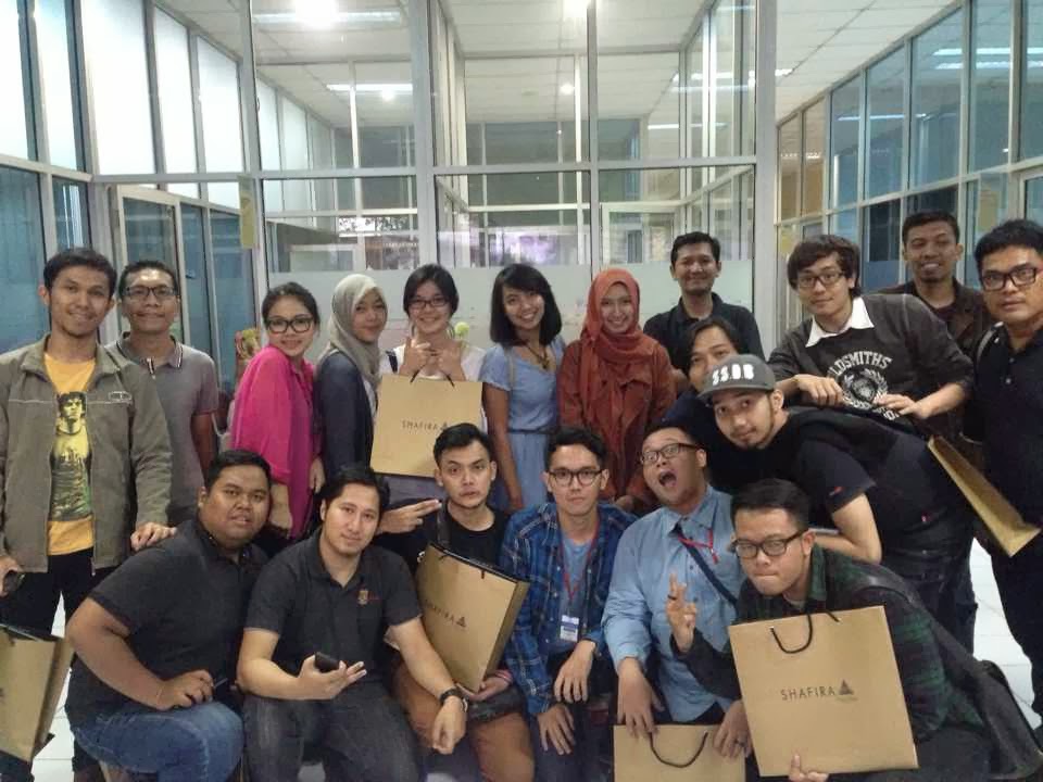 Selanjutnya adalah jalan-jalan ke Shafira Coorporation. Yang muslimah pasti udah tau sama brand busana muslim satu ini. Dan ternyata..ternyata..ternyata... ah, speechless lah! Bisnis yang hanya berawal dari Ibu Fenny Mustafa yang jualan baju di pameran tahun 1989 ini udah berkembang jadi tren fashion muslimah yang mendunia. Kami sekelas keliling melihat proses dari bagaimana desain, buat pola, pilih kain, gunting pola, jahit, tempel payet atau bordir, bikin dummy, jahit massal, quality kontrol (kotor, salah jahit, salah ukuran, dsb), sampai bagaimana diversifikasi bisnis dan pemilihan segmen pasar sesuai desain dan kualitas baju.