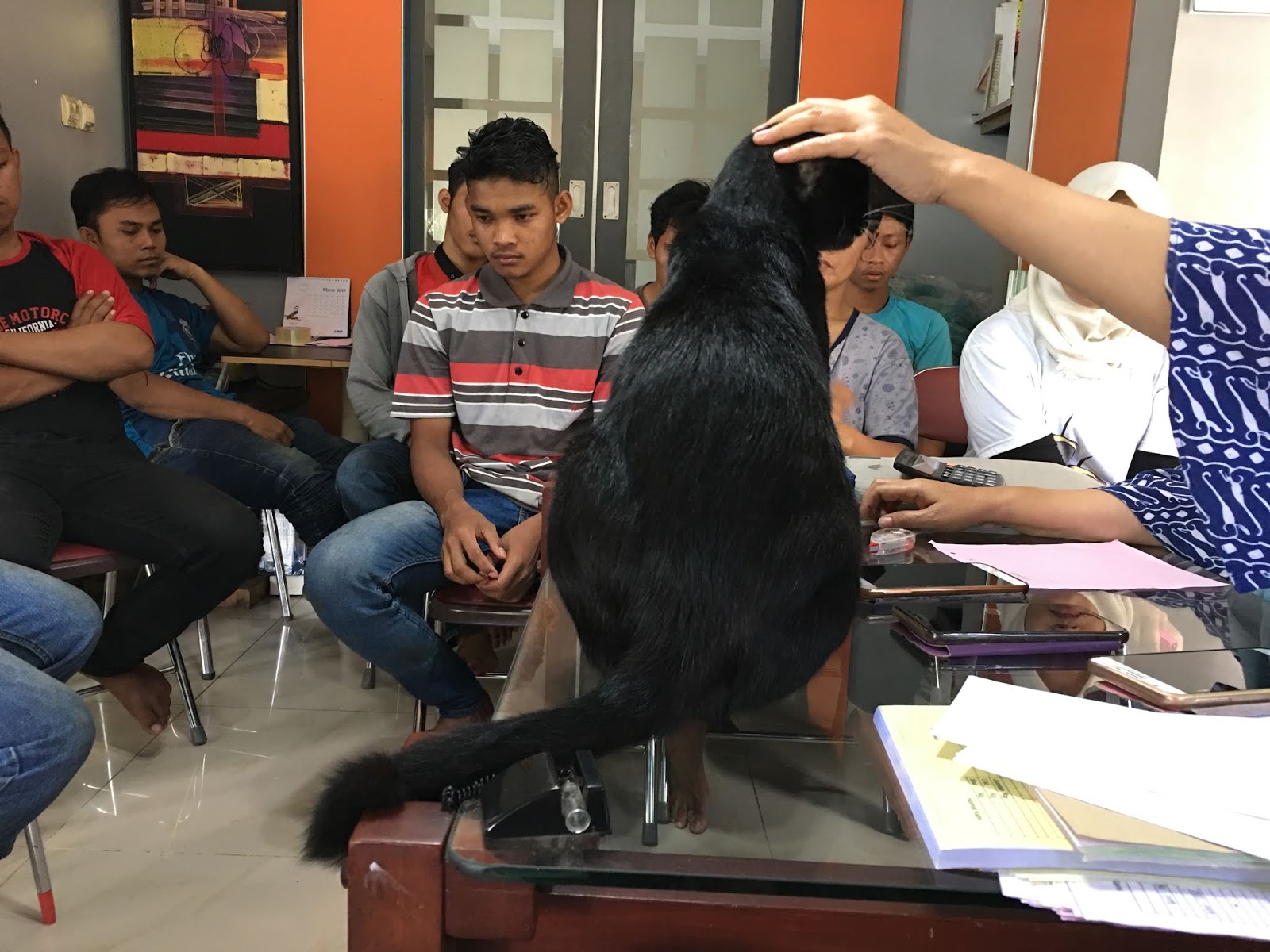 Some said that cat is smart animal and they saw human as other creature at the same level with them. So yeah, as he became our family member, sometimes we had hard time. When he was in badmood because Mom accidentally stepped on his tail, or when he was angry and scratched me because I postponed his lunch (he need diet, he was too fat back then), or when he was just go away from home because we're all too busy with work and didn't pay attention to him.