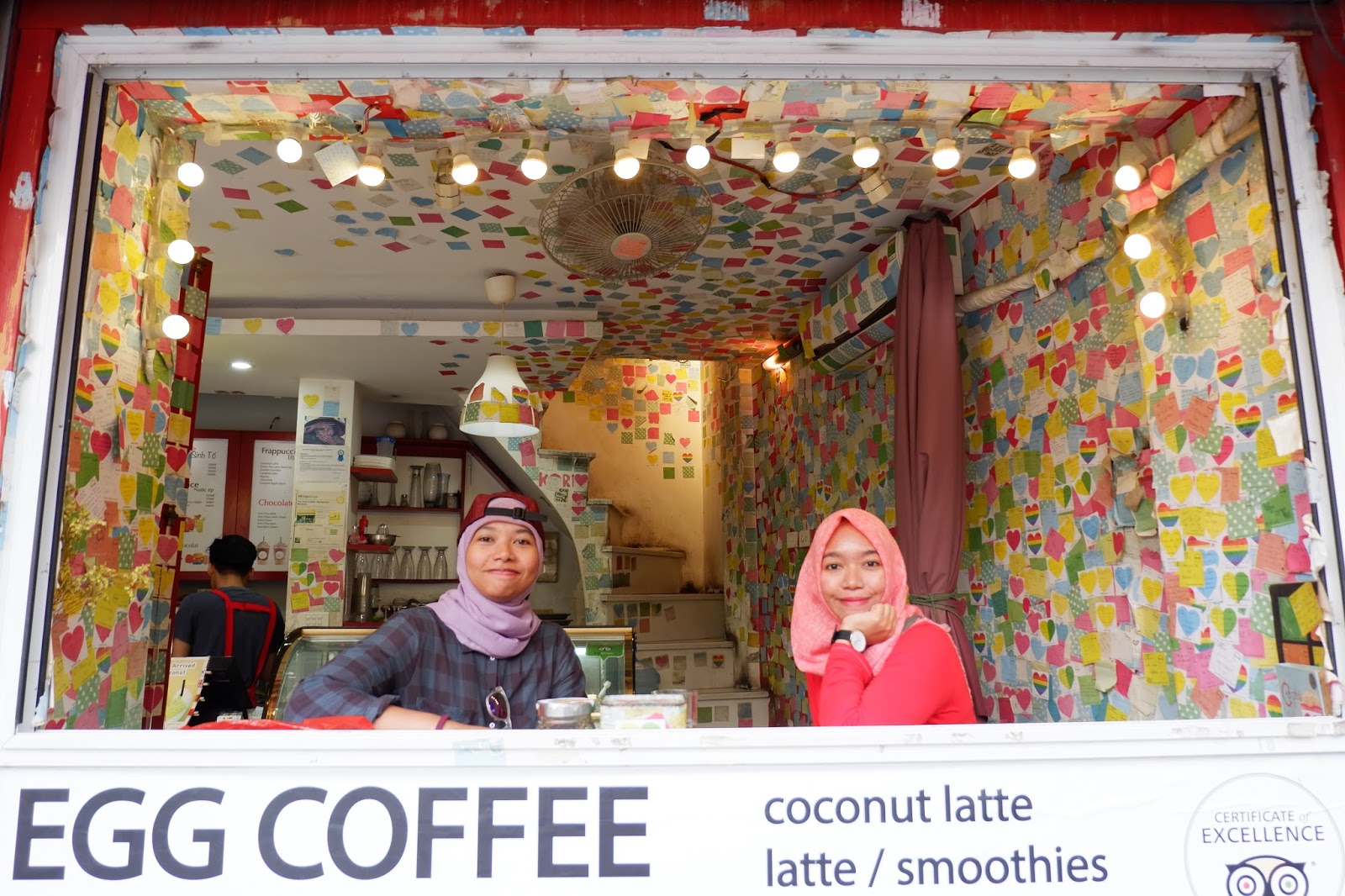 Karena memang tidak ada rencana khusus di Hanoi, sore hari di kami lalui dengan jalan-jalan santai di sekitaran Old Quarter, mengunjungi beberapa kuil, wisata kuliner di pinggir jalan, keluar masuk toko souvenir, dan ini yang paling kami suka: mencicipi kopi telur! Enaaakkk bangeeett dan semua pelayannya ramah.