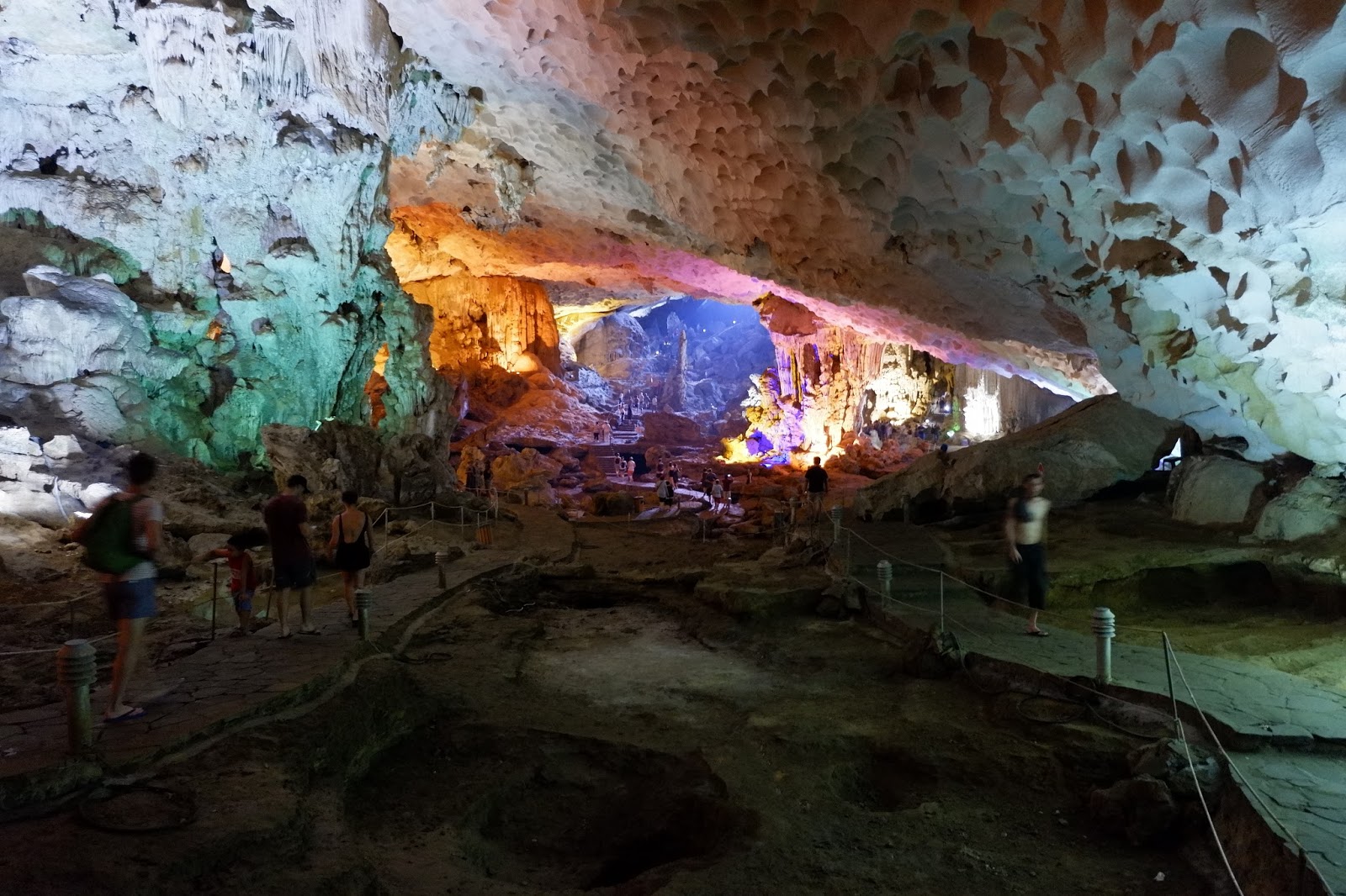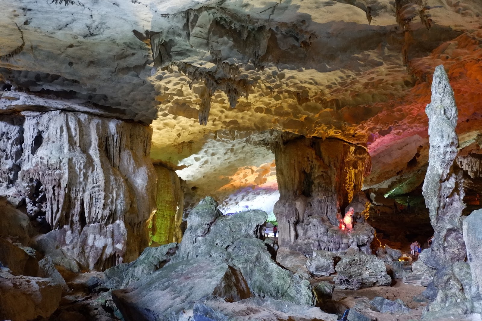 Pemandangan dari dalam kamarKapal melaju dan meliuk-liuk di antara pulau-pulau kecil ke tujuan pertama yaitu Sung Sot Cave yang artinya Surprise Cave. Mengapa dinamakan seperti itu? Zaman dulu sekali saat Vietnam belum seterkenal sekarang, ada 2 perempuan Prancis yang berpetualang dan menemukan gua ini. Karena isi gua yang sangat luas dan menakjubkan, mereka pun merasa surprise. Jadilah dinamakan Surprise Cave. Agak garing sih ceritanya tapi ya emang gitu. Hahaha...Hal yang saya perhatikan dan rasakan setiap kali backpacking ke Vietnam (Ho Chi Minh City dan Hanoi) adalah bagaimana pemerintah dan masyarakatnya mengelola pariwisata negara ini. Mereka sadar bahwa negara mereka baru saja 'membuka diri' pada dunia. Dengan potensi alam yang indah, mereka tahu bagaimana membuat para turis nyaman dengan mengelola alam agar mudah dijelajahi dan dinikmati tanpa merusak kondisi aslinya.