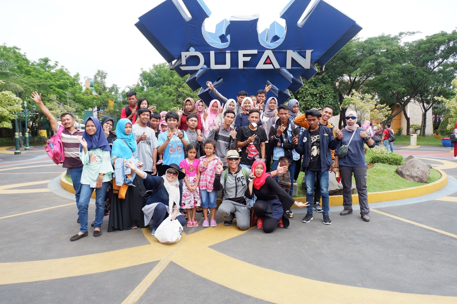 Minggu lalu, Tenda Destarata kembali mengadakan Family Gathering, sebuah event tahunan yang intinya piknik seluruh karyawan dan keluarganya. Berdasarkan beragam usulan akhirnya disepakati kami main ke DUFAN. Kok Dufan? Ya gimana dong, mau ke tempat wisata alam macam di puncak nginep di villa, udah pada bosen lha wong kami biasa banyak orderan pasang tenda dan dekorasi di sana. Mau yang agak jauh macam ke Sukabumi, Pelabuhan Ratu, Sawarna, dll, lha kebanyakan karyawan justru berasal dari sana jadi bagi mereka udah nggak seru. Hahaha... Mereka justru belum banyak tahu Jakarta dan wisata modern. Yasudah, cuss!