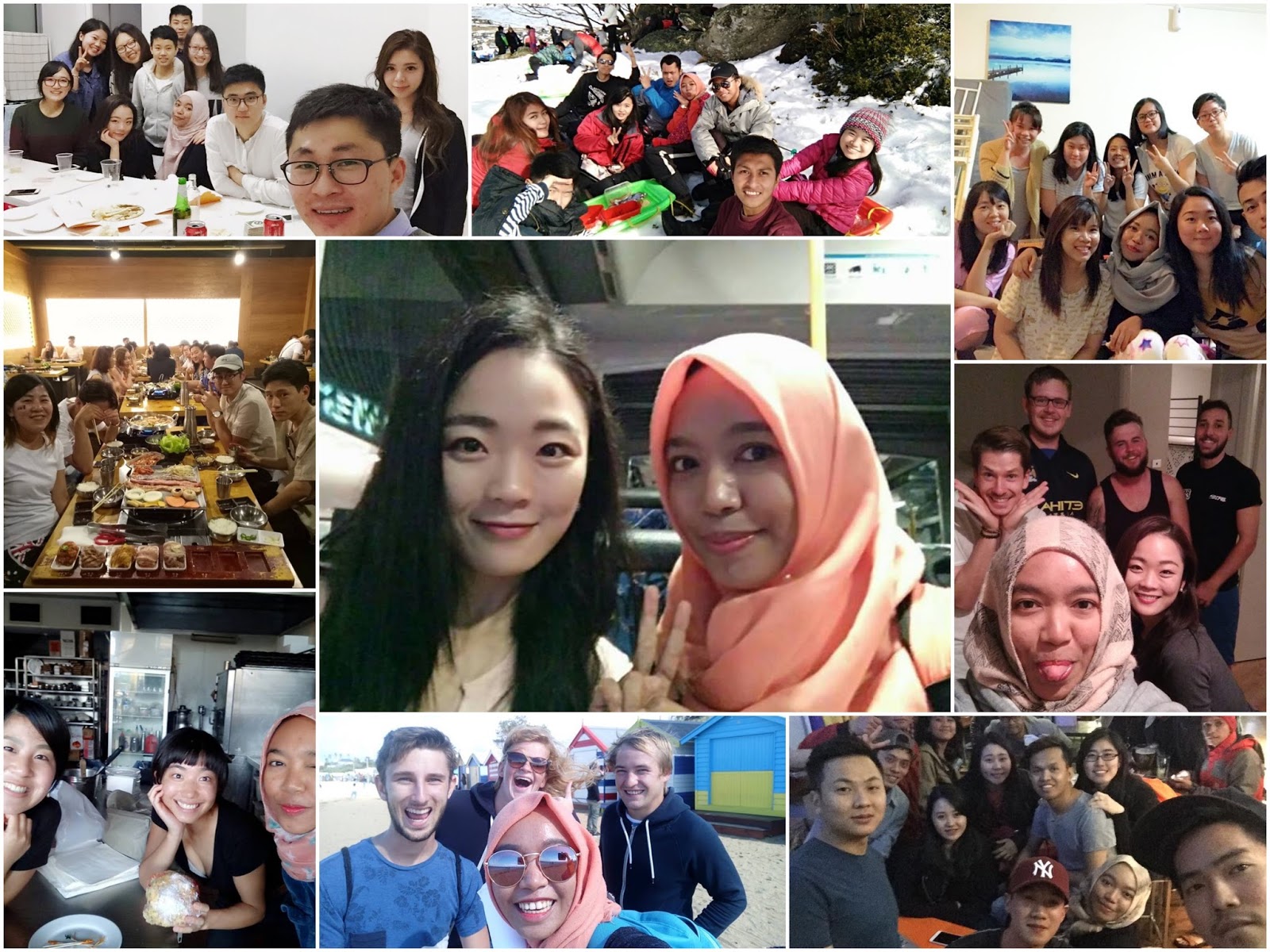 Lingkup pertemanan saya di Australia menjadi lebih luas, selain dengan teman-teman Indonesia juga teman-teman internasional. Untuk teman-teman sebangsa, saya akui tidak banyak. Saya hanya ikut grup WhatsApp dengan anggota sedikit tapi solid. Kemudian dua bulan terakhir di Australia saya tinggal di apartemen yang penghuninya orang Indonesia semua. Sisanya teman-teman dari negara lain yang saya dapat sebagai housemate, rekan kerja, di hostel, dan kampus. Dalam setahun saya tinggal di 4 alamat rumah/apartemen berbeda, singgah di entah berapa hostel, gonta-ganti tempat kerja 5 kali. Jadi ya teman fesbuk sama follower instagram nambah gitu #pentingbanget
