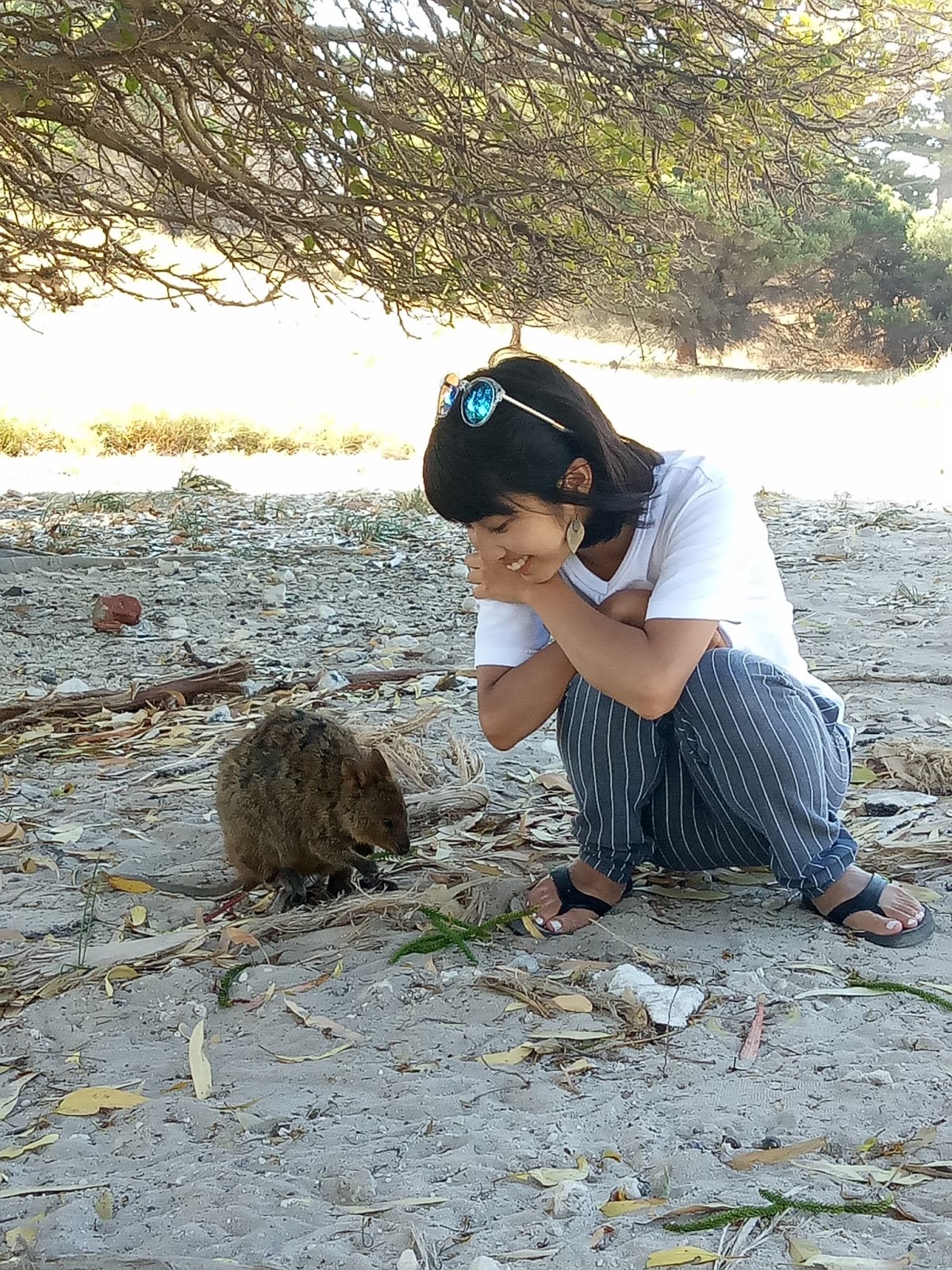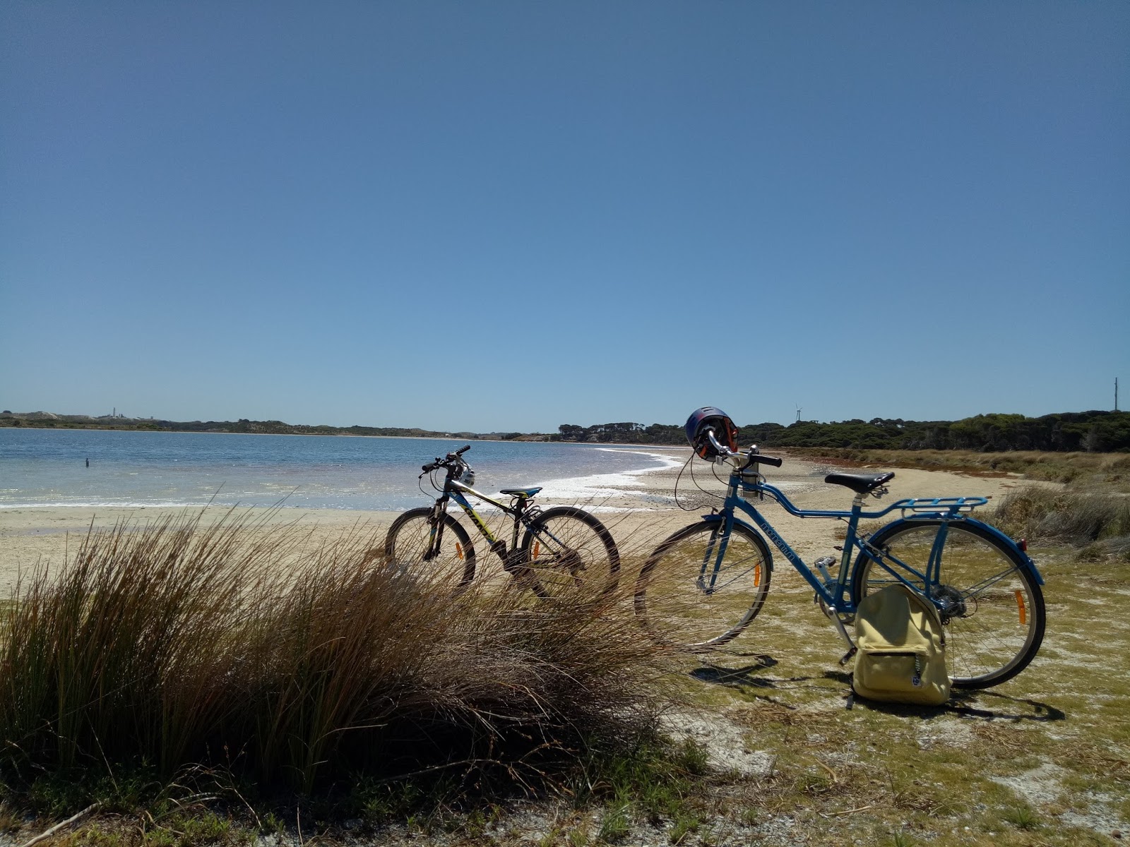 Cara paling menyenangkan untuk mengeksplor Rottnest adalah dengan sepeda. Selama kami berkeliling pulau, ya Gusti... Beneran berasa surga. Cuaca cerah dengan angin sepoi-sepoi, pantai-pantai pasir putih dan laut biru, tebing-tebing yang ciamik untuk melihat seluruh pulau, jalanan aspal yang bagus tanpa kendaraan bermotor (ternyata surga ga perlu mobil atau motor bagus, gaes), hutan-hutan rindang yang menyaring cahaya matahari, binatang-binatang liar yang cantik dan hidup damai berdampingan. Selama sepedahan, saya dan Kiyomi berasa dua anak kecil lagi main-main. Kadang ngebut, kadang pelan-pelan, ngobrol dan ketawa-ketawa, berhenti di beberapa lokasi indah untuk foto-foto narsis, main sama burung atau quokka, makan bekal, berenang di pantai, lanjut naik sepeda dan cari pantai lain lalu berenang lagi.