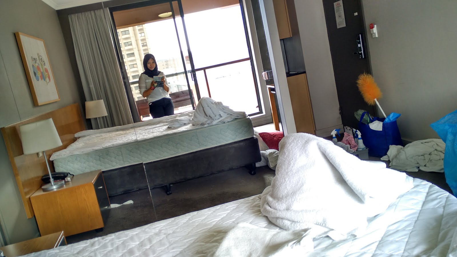 Ini kampus, bukan kastil Disney!Interviewer: So, why do you want this job? | Me: I need money.Selain kuliah, saya juga kerja part-time sebagai room attendant di hotel. Itu loh, tukang bersih-bersih kamar kalau kalian nginep di hotel. Awal-awal kerja, sumpah ya Gusti tolong hambamu iniiiiii... Saya yang nggak pernah kerja fisik, langsung kerja fisik cape banget.. Tangan saya yang sehalus kulit bayi sekarang jadi sekasar tapas cuci piring. Belum lagi karena nggak terbiasa beberapa kali luka-luka. Pengen nangis tapi ga jadi karena gajinya gede. Hahaha... Di sini hampir semua pekerjaan dibayar per jam, jadi pemilik perusahaan bener-bener menghitung harus seberapa efektif karyawan bekerja. Nggak ada cerita lagi kerja bisa main Facebook atau chatting wasapan. Waktu kerja ya kerja! Alhamdulillahnya, saya kerja di hotel yang banyak pengunjung, jadi selalu dapat jam kerja lumayan. Meski tetep kalau pulang kerja perlu baluran counterpain.