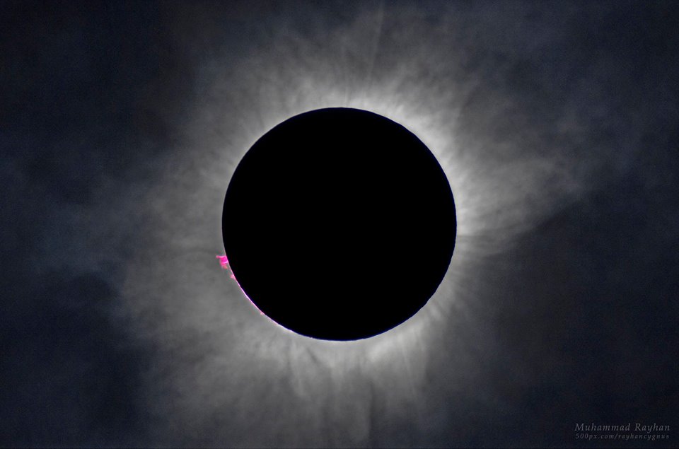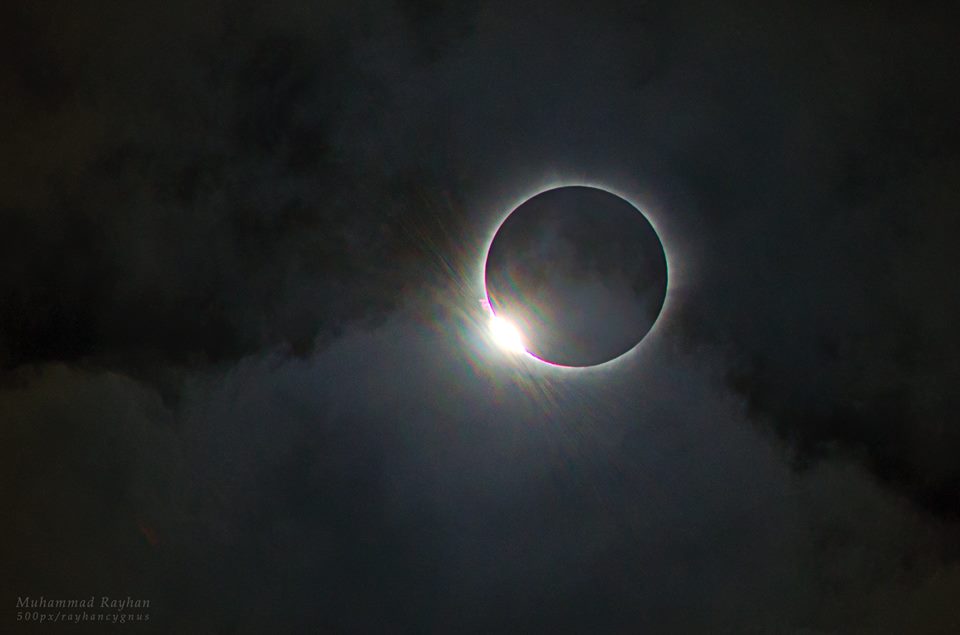 Sungguh! Kalau ada salah satu peristiwa paling ajaib yang pernah saya alami, menatap gerhana matahari adalah salah satunya. Langit gelap menyisakan sedikit sinar redup di sekeliling Matahari. Temperatur dingin. Dan lihatlah mahakarya Tuhan, rasi bintang! Bintang-bintang dan planet bermunculan berkedip layaknya malam. Saya sendiri sesak napas dan ingin menangis saking takjub dan terpana. Subhanallah banget pokoknyaaaaa...