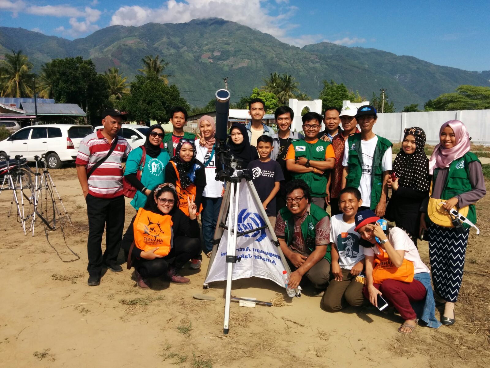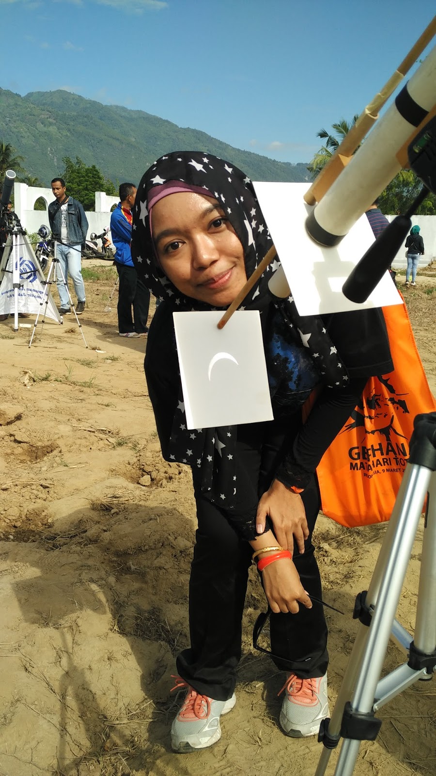 Tanggal 9 Maret usai subuh, saya dan teman-teman Himpunan Astronomi Amatir Jakarta sudah meluncur dari penginapan menuju sebuah lapangan luas di lokasi pemukiman penduduk lokal daerah Dolo, Palu. Sesuai SOP di segala macam pengamatan benda langit, mulai dari persiapan teleskop, penentuan posisi (ga lucu kan pasang teleskop eh ketutup rimbun pohon), pasang-pasang filter, fokus-fokus bayangan, dan segala macamnya. Akhirnya terpasanglah lebih dari sepuluh teleskop. Selain untuk dinikmati oleh anggota, semua perangkat juga bisa digunakan penduduk lokal yang ingin ikut serta menikmati fenomena alam ini. Termasuk kacamata khusus gerhana matahari.