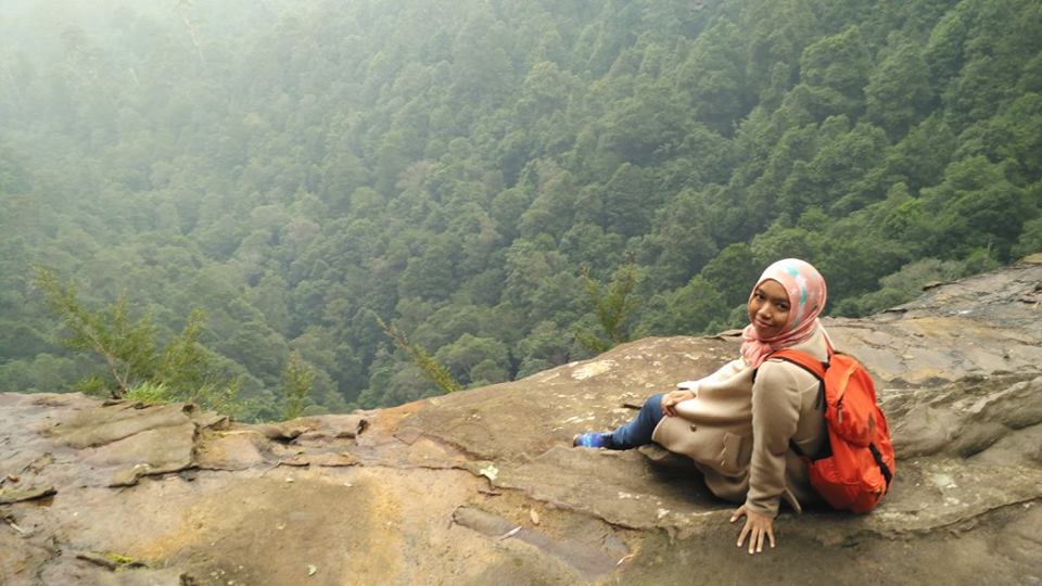 Setelah saya foto di sini, tiga hari kemudian ada yang kepleset di tebing ini dan meninggal.