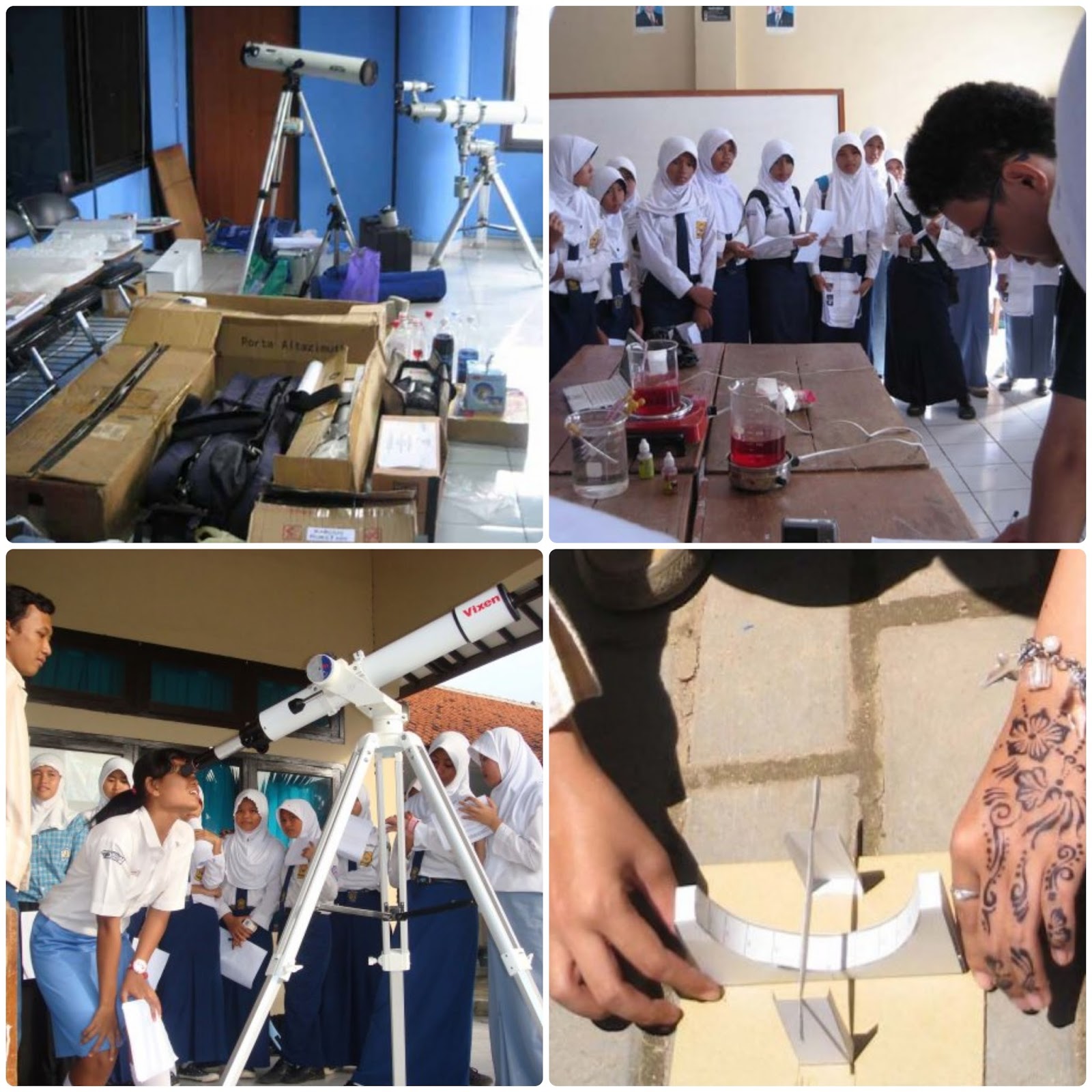 Sebelum melakukan pengamatan gerhana, kami memberikan workshop-workshop seru untuk masyarakat atau siswa-siswa tentang ilmu astronomi terutama matahari. Contohnya seperti membuat mini sundial (jam matahari ala kuno dari 3500 sebelum masehi). Kemudian meracik ocean solaris untuk merefleksikan bagaimana sih sebenarnya proses yang terjadi di permukaan matahari nan superaksasa itu? Apakah matahari itu bola api, bola cahaya, atau bola naga?