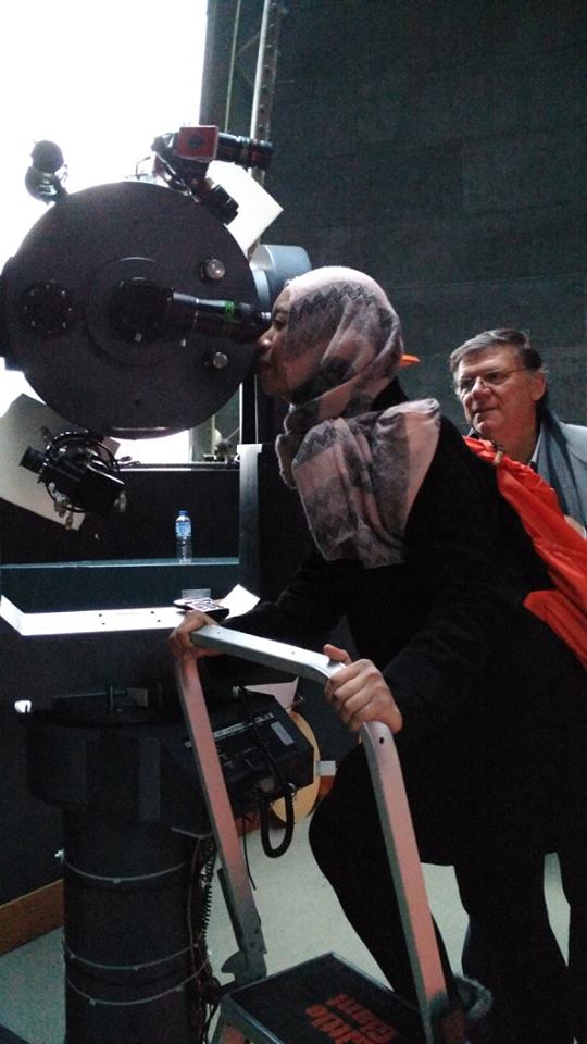 Menanti puncak gerhana menjadi waktu yang membuat gemes-gemes penasaran. Saya banyak ngobrol dengan penduduk sekitar yang ramah & menyenangkan. Antusiasme mereka akan astronomi selalu membuat satu sisi melankolis saya muncul. Menjelang pukul 7.30 (waktu lokal), rasa deg-degan makin menyeruak di antara semua masyarakan yang berkumpul di lapangan. Suasana perlahan berubah lebih dingin (seperti hawa maghrib). Aba-aba dari salah seorang anggota HAAJ yang menghitung mundur membuat semua perhatian tertuju pada Matahari.