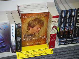 On the shelves of the BOOK WAREHOUSE among the other fantasy novels