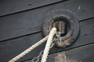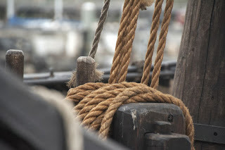 Some of the ropes look new... okay.. it's moored to a modern wharf. Still...