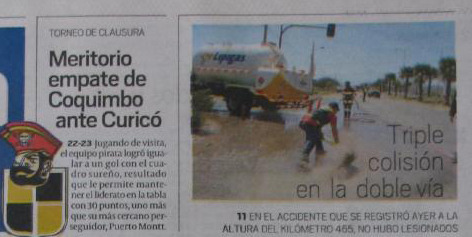 So we stayed the last few days, nurtured our seat belt bruises, lurched about town, picked up a newspaper featuring the accident, and booked a flight straight to Santiago de Chile, arriving just before we had to fly back home. Of course I had to turn these experiences into a novel.