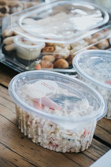 Kuna Bee tiim meiega siiski hommikuni pidutseda ei saanud, pidime me välja mõtlema muu laua, mille katsid ära Delizi, kes on superarmas kodukokk, kelle valmistatud olid kõik salatid ja mõnusad suupisted. Lisaks tellisime ka 60 bruchettat Maca maitsete käest, sest need on lihtsalt amaziiing! Ma ei pea vist lisama, et kõik toit söödi kenasti ära ja alles ei jäänud mitte kui miskit. Hea kraam! (Ps! Delizi ütles, et kes nende poole pöördub ja ütleb, et ta Malluka kaudu tuli, saab enda tellimuselt 10% alla ka :)
