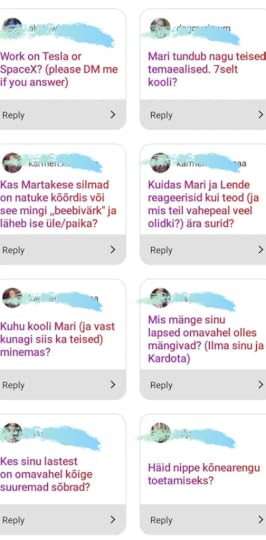 Vahepeal ringles netis selline küsimustik lastele, ma lasin Maril ka vastata, aga unustasin üles riputada. No vot, siin see siis on: