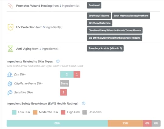 Jah, see võib tunduda esiti kallis, et issand, 21,95, aga esiteks on see hetkel allahinnatud ja teiseks on selle koostis palju parem, kui odavad toidupoe versoonid. Ma avastasin enda jaoks hiljaaegu sellise lehe, kuhu saad sisestada kosmeetika koostisosad ja see ütleb, et kas tegu on hea või kehva tootega. Näiteks Naifi päiksekreem on selline: