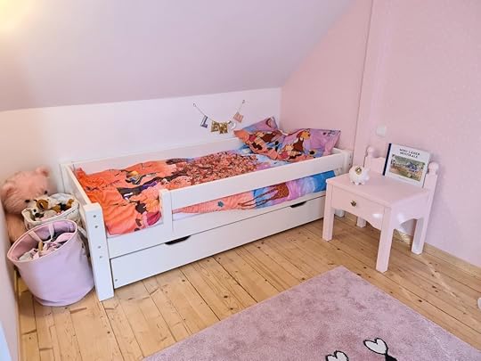 Üks asi, mis JÄLLE muutus, on laste voodid. Kuigi printsessikad olid igati ägedad, siis Mari mahtus sinna hädavaevu ära (voodi oli 140 ja Mari ise juba umbes 128 cm) seega vahetasime mõlemad välja. Ma oleks NII tahtnud Suwemi kolmekorruselist nari, aga olgu neetud see maja ja kaldlaed, sest mul ei oleks see mitte kuskile ära mahtunud. Korraks vaatasime ka seda majavoodit, aga ka selle kalle oleks täpselt paar sentimeetrit natukene vale olnud. Seega jäime klassikaliste 90×200 voodite juurde, mis oli kõige rahakotisõbralikum ja ilmselt ka kõige kauem kasutatav variant. Nende voodite juurde soetasime ka veidi “lisavarustust”, ehk siis ühe voodikasti, kus hoida lastetoa voodipesu ja ühe voodi sisse lisavoodi raami, ehk siis kui keegi lastele kunagi külla tuleb, või Marta suvatseb mu külje alt ära minna, siis saab sinna minna.