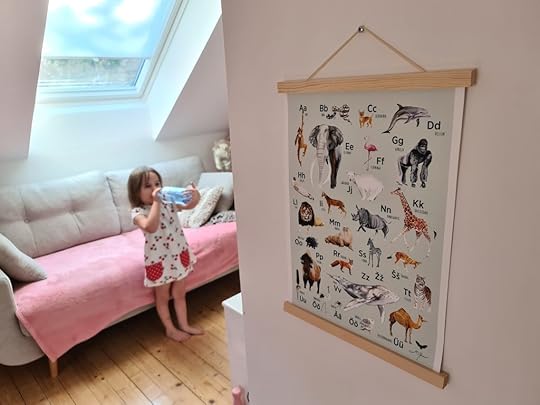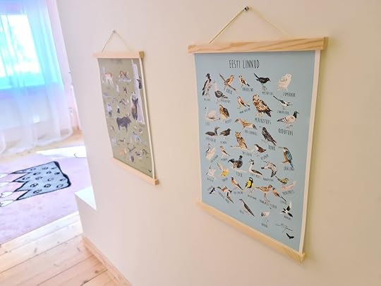Mis veel uut on, Kuma saatis lastele uued postrid ka ja need on täielik hitt. Muidu on vist postrite point niisama seinal ilus olla, aga need õpetavad loomi ja linde ja tähestikku, Mari mängis eile koos Lendega nendega üli pikalt. Teda praegu megalt huvitavad igasugused tähed ja värgid, seega üli hea on just lapse huvi ajal asjadega tegeleda. Mõnda aega tagasi ei tahtnud ta neist kuuldagi. Igatahes on postrid armsad, õpetlikud, ilusad ja tulid koos selle raami värgendusega koos, et saime kohe seina panna.