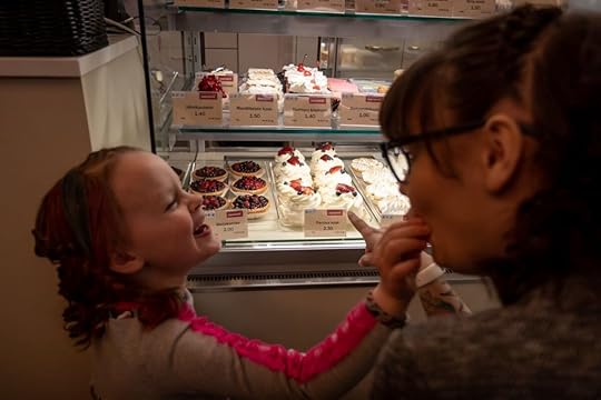 Lõpuks saime koogid valitud, kohvi tellitud ja viimaks ka isegi maha istuda. Ma muidugi krabasin meile kõiki kooke, mis vähegi head tundusid (ehk siis suht… kõike) ja üritasin neid endale sisse kühveldada, sest mu kuklas tiksus kogu aeg väike kellake – kaua ei saa olla, et lapsed istuvad ja söövad, no KOHE KOHE peab kellelgi mingi inin ja kiun välja pääsema. Et siis jah, selle asemel, et oma kooki ja rahu nautida, mis issanda taevaisa mulle hetkeks kinkinud oli, valmistus mu mõistus juba järgmiseks võitluseks kellegagi. Kolme lapse võlu – iial ei tea, kes mida tahta võib.