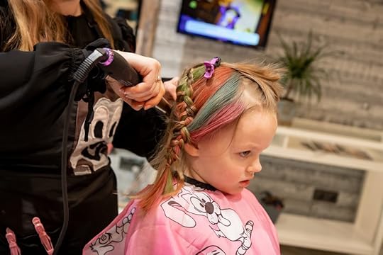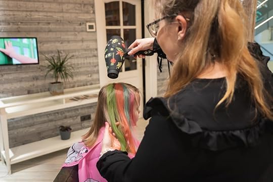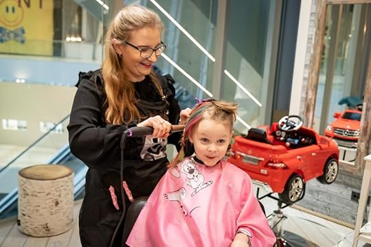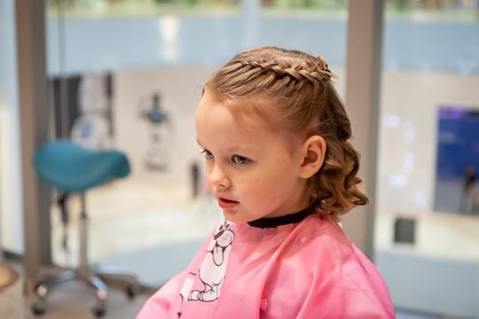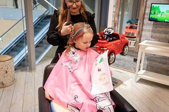 Maril oli see au meile tookord soengud valida. Loomulikult nõudis ta endale “vikerkaare juukseid” ja mulle printsessilokke. Lõpuks saime mõlemad soovitud soengud pähe, aga ma tõesõna ei kujuta ette, kuidas keegi suudab olla LASTEjuuksur, tõesõna. Mari mõtles 4 korda ümber, mida ta tahab ja mida mitte. Pea vajus kogu aeg viltu. Toolis istuda ei viitsinud. Pidevalt niheles ja sügas ennast ja hakkas paar korda väitma, et ta soeng on valmis, kuigi alles alustati selle tegemist.